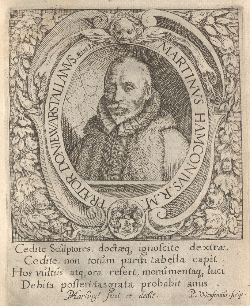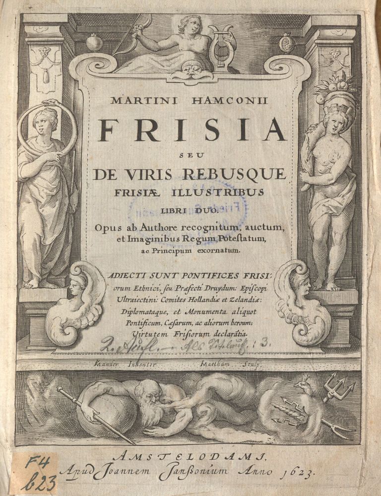 Wo kommen eigentlich die Friesen her? Die Legende weiß darauf eine einleuchtende Antwort: Wie Rom von Romulus erbaut wurde, wurde Friesland von Friso gegründet. Mit diesem legendären ersten friesischen Fürsten beginnt auch der Hauptteil von „Frisia seu De viris rebusque Frisiae illustribus“ („Friesland oder Von den bedeutenden Männern und Ereignissen Frieslands“), einem zuerst 1609 erschienenen Werk von Martinus Hamconius. Der Verfasser, der eigentlich Marten Hamckema hieß, wurde um 1550 im Süden der Provinz Friesland geboren. Im Konflikt der reformierten niederländischen Provinzen mit dem katholischen Herrscherhaus der spanischen Habsburger, der 1568 in den Achtzigjährigen Krieg mündete, stand er als Katholik auf Seiten des Königs. Dreimal wurde er deshalb aus einem öffentlichen Amt gedrängt und musste seine Heimat verlassen. Viermal erlebte er eine Niederlage der Spanier nach einer Belagerung der Stadt, in der er Zuflucht gefunden hatte. Beim Fall von Stavoren konnte er sich nach eigener Darstellung nur schwimmend in Sicherheit bringen.